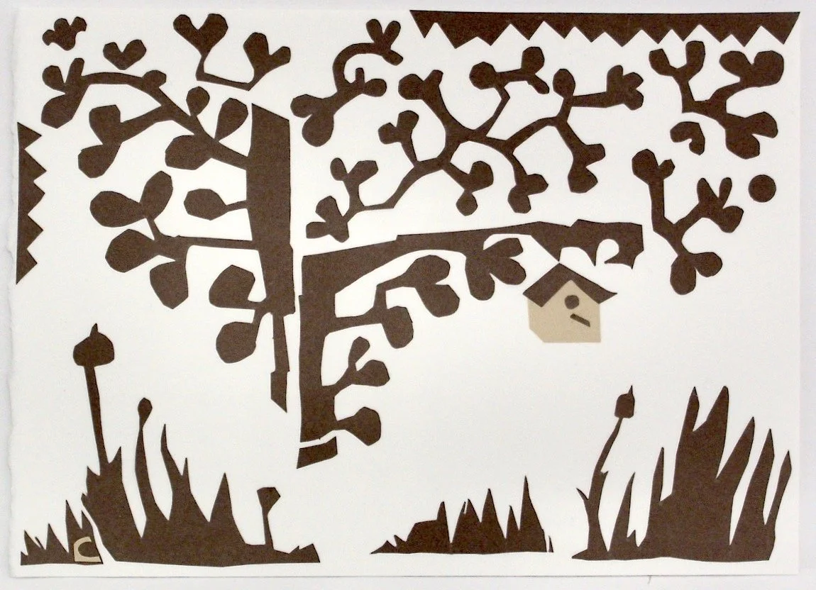 birdhouse in garden | paper collage | 5" x 7" | 4 of 24