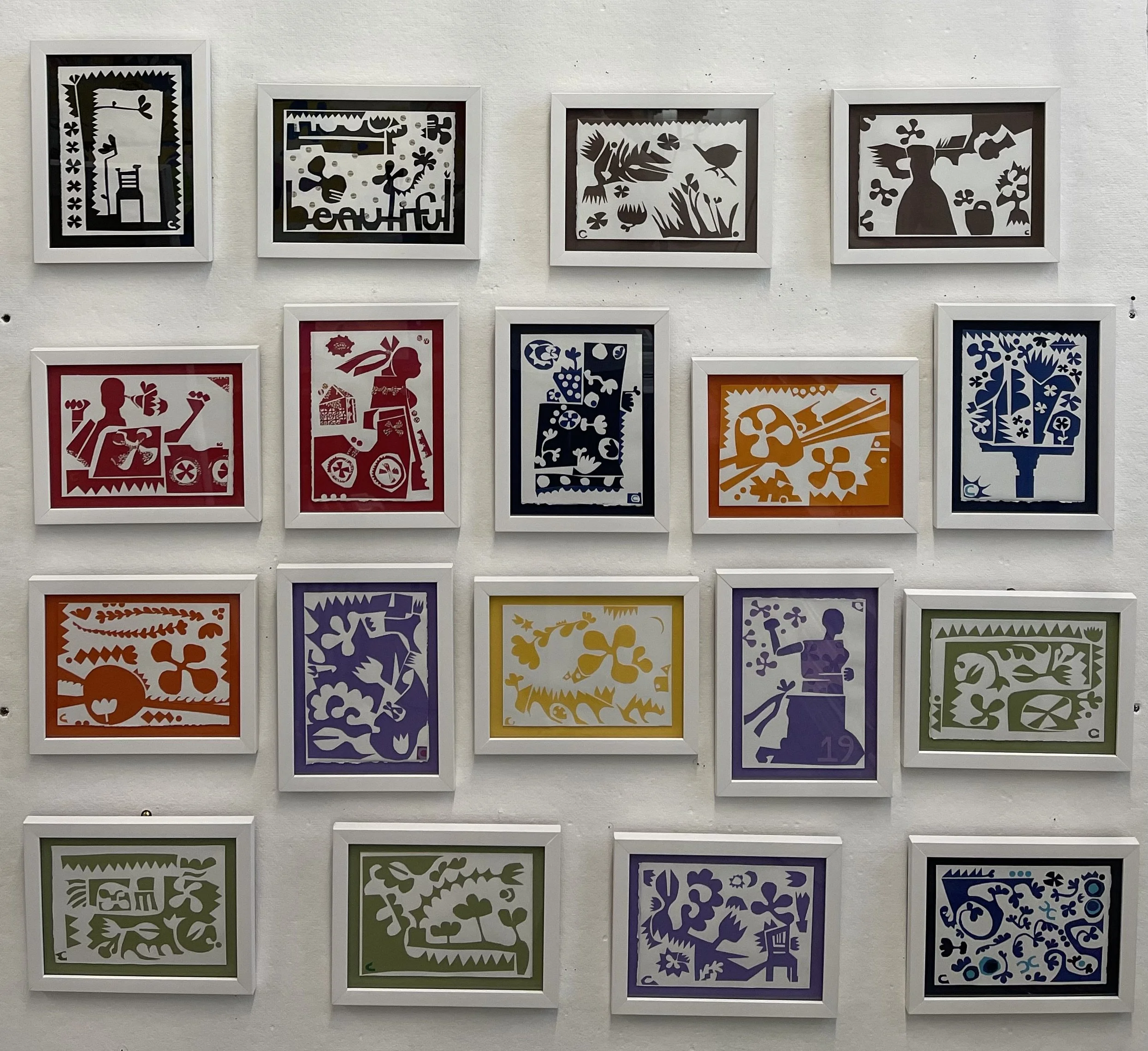 This series of 24 collages were inspired by the Philadelphia Pride Flag and its colors: Black, Brown, Red, Orange, Yellow, Green, Blue, and Violet. Created in 2020, these small postcard sized artworks are reflections of Culpepper’s surroundings and current events of that time.